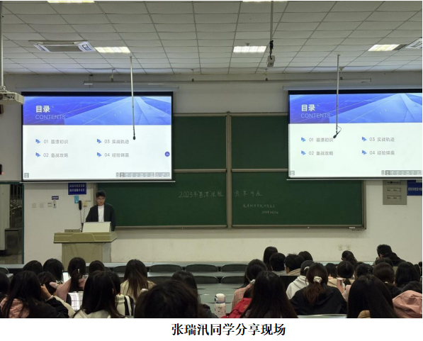 梦想引航,薪火相传。为助力生科学子明晰职业规划,洞悉“蓉漂”人才政策与备考策略,四川师范大学生命科学学院于10月30日在成龙校区第一教学楼C203教室开展了2025年“蓉漂”经验分享系列讲座。第三场讲座特别邀请了我院2023级学科教学(生物)专业在读研究生张瑞汛担任主讲人,他以“道阻且长,行则将至”为主题,为在校同学们带来了一场干货满满的“上岸”指南。讲座由研会学科部部长邓婷主持,各年级研究生100余人参会。