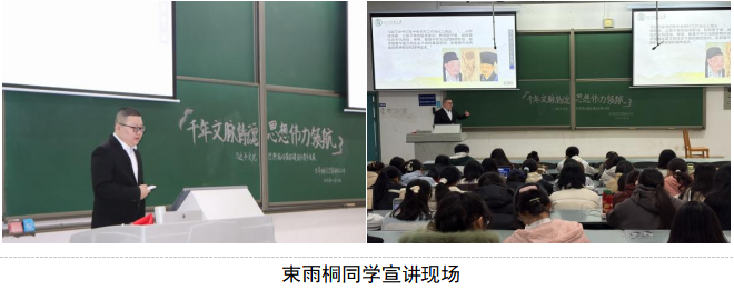 为深入学习贯彻习近平文化思想,引导广大青年学子坚定文化自信、强化使命担当,四川师范大学生命科学学院于11月13日中午12:40,在成龙校区第一教学楼C102教室开展了“千年文脉铸魂,思想伟力引领——习近平文化思想指引强国建设与青年发展”的主题宣讲活动。本次宣讲面向学院全体研究生,由“狮山润心”研究生理论普及宣讲团创新理论宣讲组的束雨桐、秦香兰、沈悦三位同学担任主讲,围绕习近平文化思想的历史脉络、文化自信与青年责任展开系统阐释。