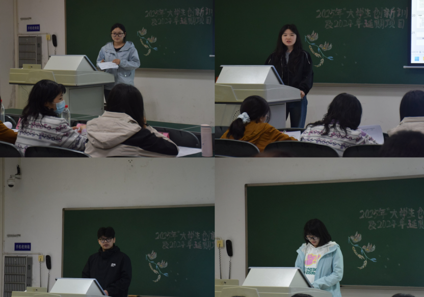4月22日,我院2025年大学生创新训练计划立项项目及2024年延期项目结题验收答辩会在成龙校区第一教学楼A216顺利举行。我院教师徐海燕、廖颖、何欣怡作为评委老师出席指导。11支项目团队依次登台展示成果、接受评审,答辩会由学习部干事胡艺田主持。