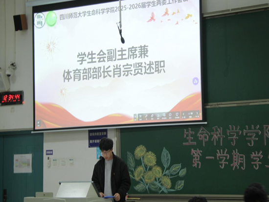 述职环节,分团委常务副书记杜晓钰代表分团委及秘书处作工作汇报。她系统梳理了本学期分团委各项核心工作的开展情况,向全体成员的辛勤付出致以诚挚感谢,并鼓励大家坚守初心、砥砺奋进,为学院高质量发展贡献青春力量。学生会副主席兼体育部部长肖宗贤代表学生会总结本学期工作,他全面复盘了各项活动的推进成效,并郑重承诺,学生会将永葆服务初心,以更昂扬的姿态、更饱满的热情投入到下一阶段工作中。两位学生干部的述职报告既全面总结了过往工作成果,又清晰勾勒出后续工作方向,充分彰显出我院学生工作规范有序、稳步推进的良好态势。