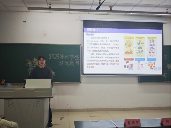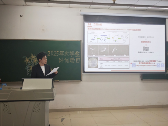 13:00,答辩正式拉开帷幕。此次答辩共有13组创新训练项目团队参与,分为团队陈述与现场评议两个环节,答辩项目涵盖植物学、动物学、微生物学三大领域,聚焦重金属胁迫、环境保护等具有社会意义的课题。各团队从研究背景、核心机制、研究进展、后续规划及竞赛投稿情况五方面展开详细汇报,展示了从科学问题提出到实验设计、数据分析的完整科研过程,并分享了在项目实践中收获的相关感悟。三位评委老师结合书面材料和现场陈述对各项目进行评估,针对研究机制、培育方法、微生物菌群筛选等关键科学问题进行提问,并就项目存在的困难和问题提出可行性的改进建议。